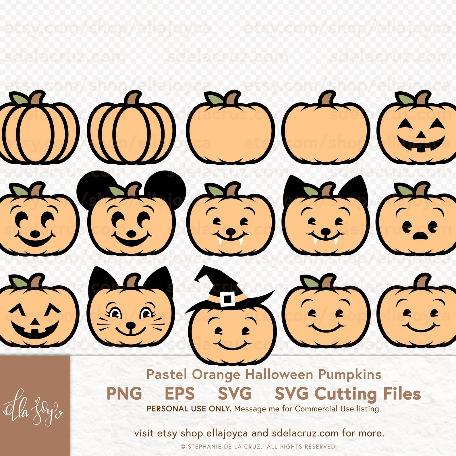 Light Orange Halloween Pumpkins DIGITAL DOWNLOAD BUNDLE