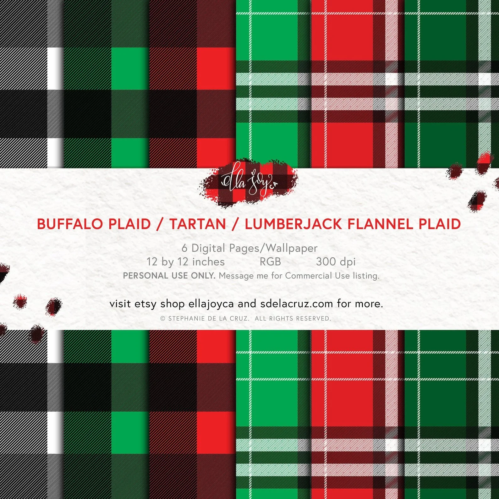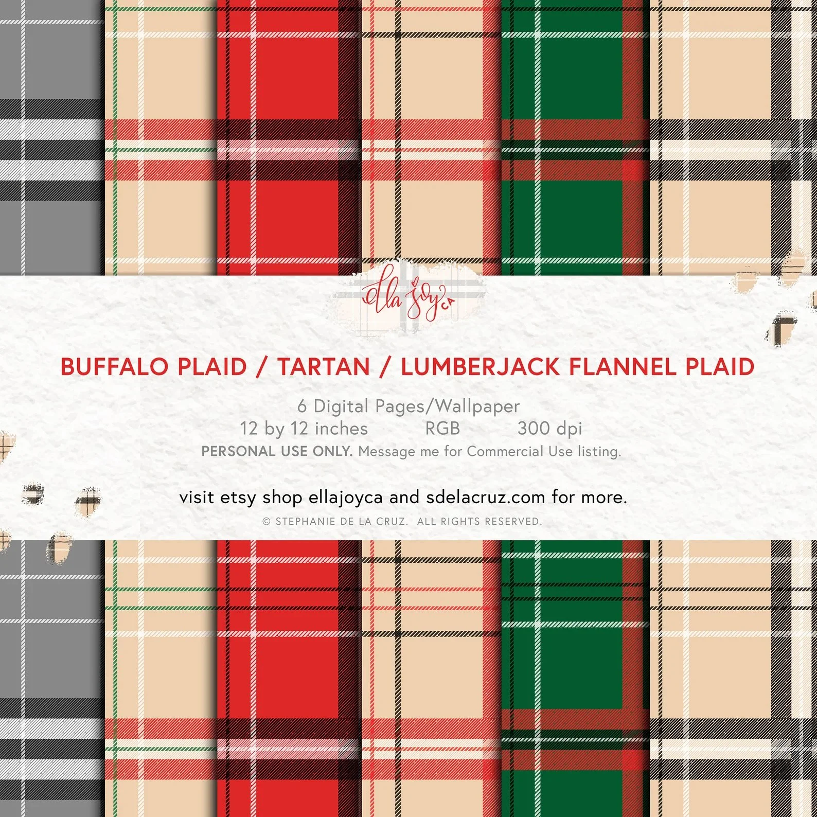 BUFFALO PLAID / TARTAN / LUMBERJACK FLANNEL PLAID DIGITAL PAPER DOWNLOAD